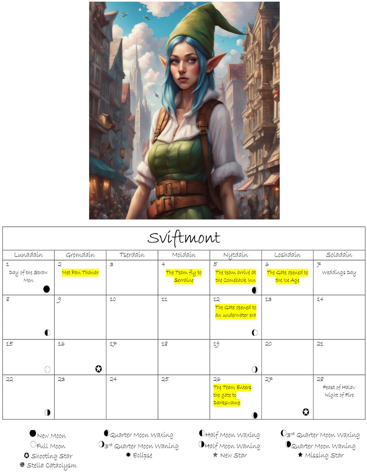 I returned home, where Fulric trusted me with his secret, he was not a halfling. Fulric was a type of Fey called a Woodrake. They could turn into Elves, Halfling or their true form, that of a green-scaled, mini-dragon. The Woodrakes were specialists, trying to keep humanity from repeating some ancient catastrophe. They would report to the king of the Fey and manipulate some circumstances to go in favor of life and magic.