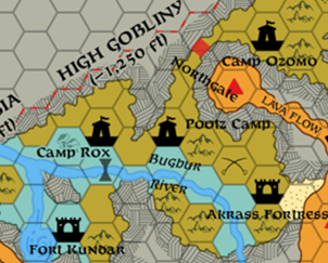 Upper Gobliny has a nilly north, but these hills become mountains as you move south. Central Gobliny is a Petrified forest, which is held as sacred, and only the goblin shamans may enter it. Near the south is Fort Akrass, the entrance to Lower Gobliny.