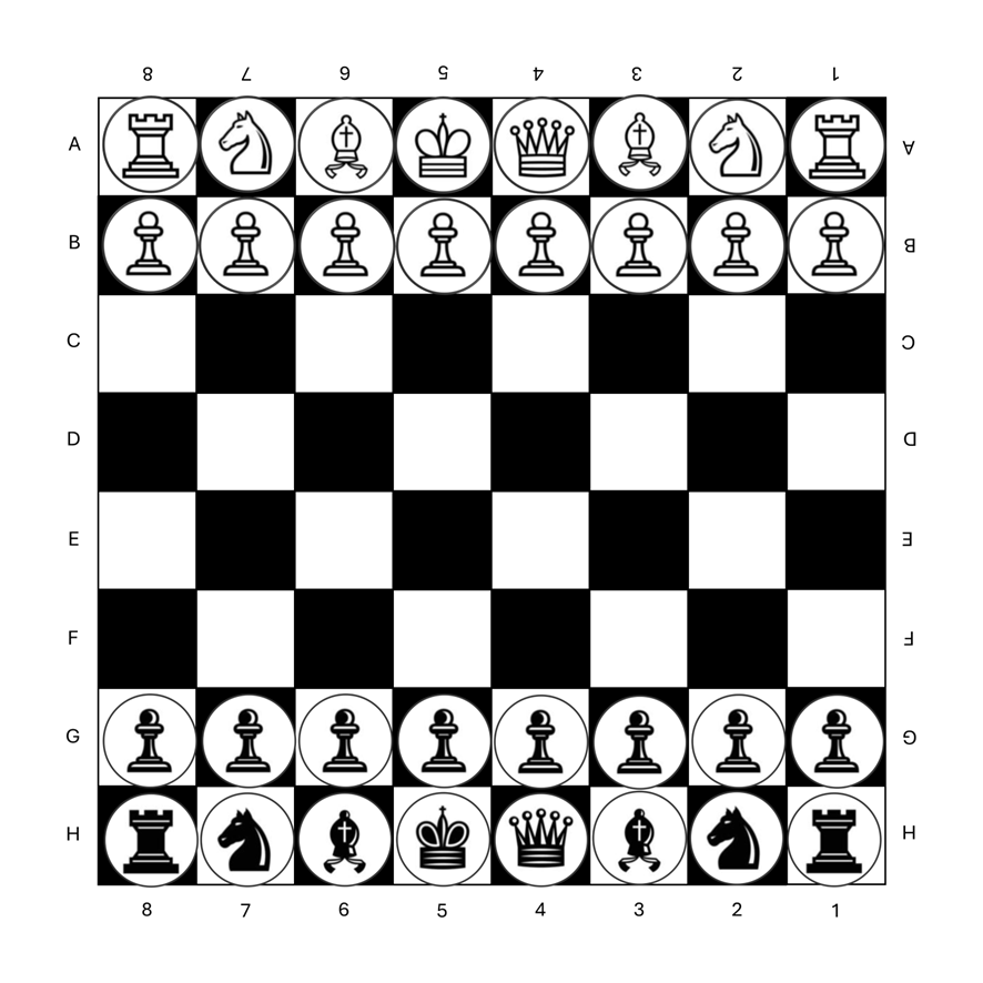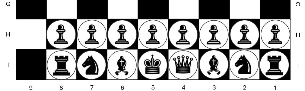 On a larger board, the Chess Army with either be centralized (If an even number space board like a 10×10 board), or offset closer to the 1 column (in a 9x9board, they would start at A1, or I1 for example).