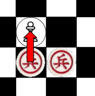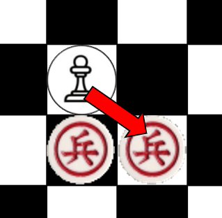 Chess Wars pieces will move the same as they would in their original game. So some armies may have the same pieces, but they move differently. Pawns are an example of this. In the pictures the FIDE Pawn may capture the XiangQi Pawn diagonally from it. But the XiangQi Pawn capture directly in front of it.